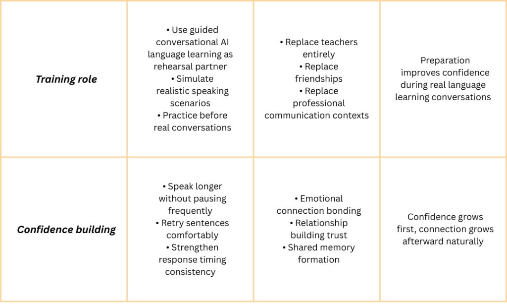 Instead of replacing teachers or human exchange, they strengthen preparation before real conversations happen.